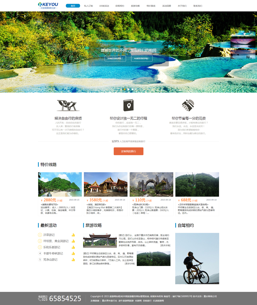 Project Description 6人游旅行网隶属于北京六人游国际旅行社有限公司。打造“为爱出行”:专为家庭,朋友,情侣间的旅行,提供私家小团精品游。打造高品质的旅行产品,解决传统跟团游和自由行存在的问题,将旅行服务做到臻善臻美。 Official website address 临夏http://www.keyoujq.com I want to share